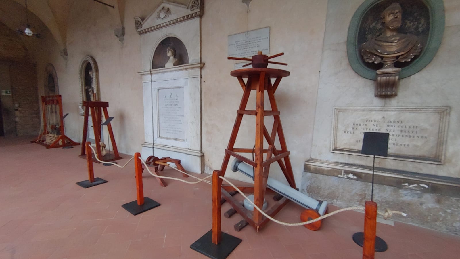 Al piano terra negli spazi del chiostro è allestita la mostra temporanea Leonardo Da Vinci il Genio e il suo Territorio.